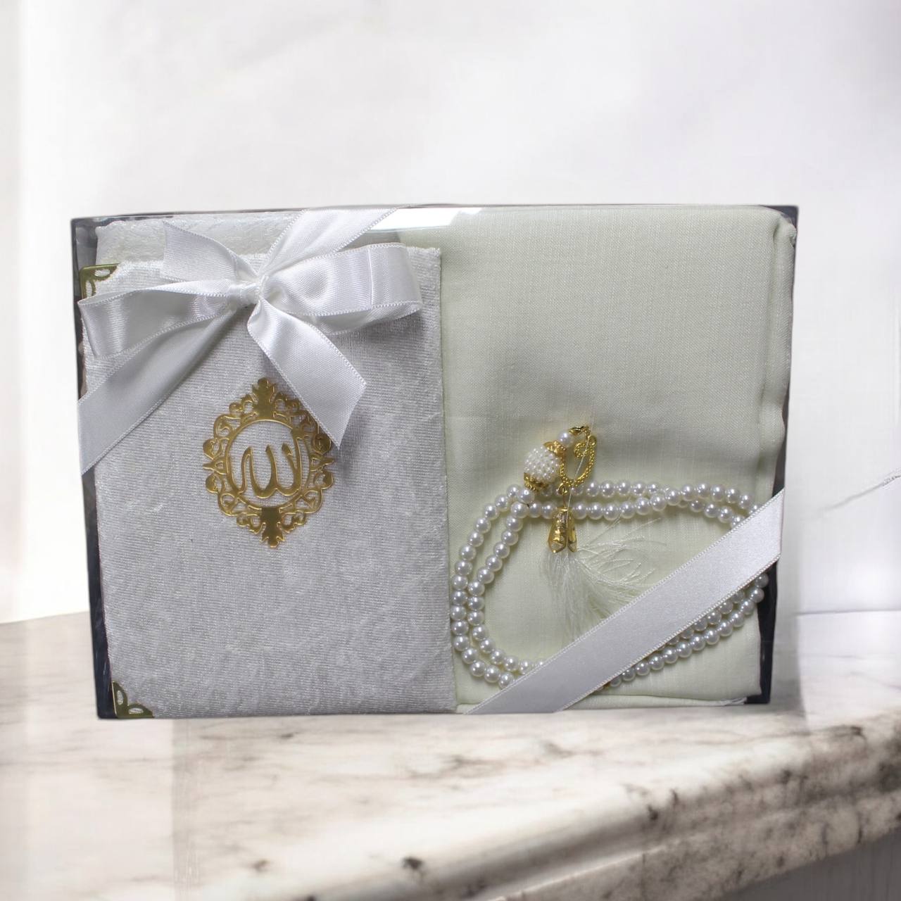 Frauen Geschenkset 4 tlg. Gebetsteppich + 99er Gebetskette+ Koran Juz + Hijab